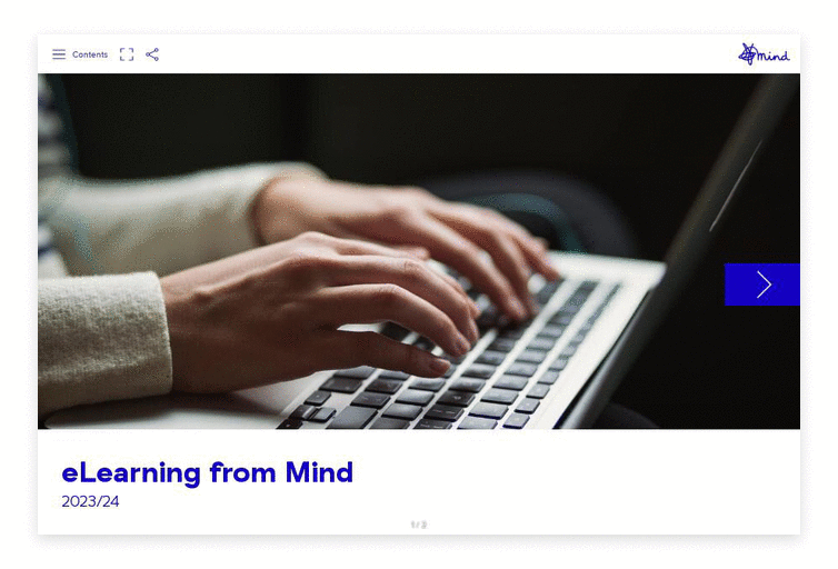 This brochure introduces Mind as a mental health charity whilst giving full details about their eLearning courses and how workplaces benefit from organizing these for staff. It also signposts other workplace services that this audience might be interested in, alongside practical advice on supporting staff with mental health problems.